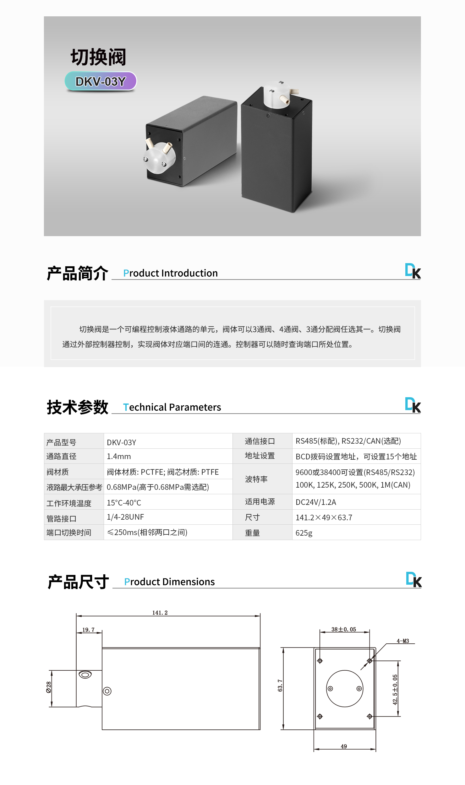 切換閥是一個可編程控制液體通路的單元,閥體可以3通閥、4通閥、3通分配閥任選其一。切換閥 通過外部控制器控制,實現(xiàn)閥體對應(yīng)端口間的連通??刂破骺梢噪S時查詢端口所處位置。