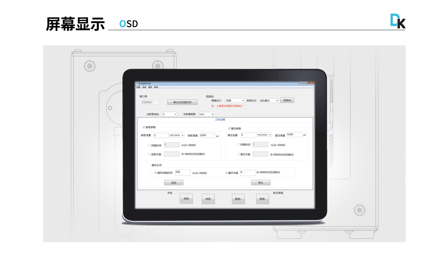 活塞驅(qū)動(dòng):步進(jìn)電機(jī)驅(qū)動(dòng)絲桿,光電編碼器檢測(cè)失步以及回零位